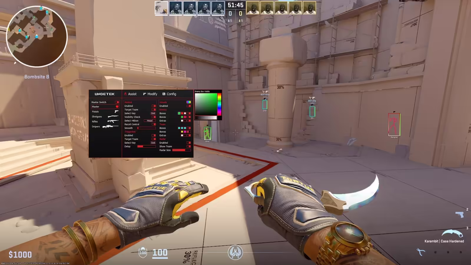 Dominate your matches with a CS2 Aimbot that feels completely natural. Undetek+ offers granular control over Smoothness, Recoil Control System (RCS), and Hitbox Selection. Whether you are tapping heads with an AK-47 or holding angles with an AWP, the cheat calculates the perfect trajectory while mimicking human mouse movement. This ensures you land your shots consistently without looking suspicious to spectators or Overwatch investigators.